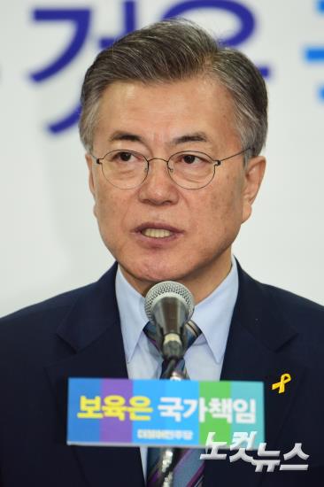더불어민주당 문재인 대선후보가 14일 오전 여의도 당사에서 '내 삶을 바꾸는 정권교체' 정책시리즈 7-보육정책을 발표하고 있다.