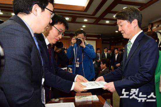 국민의당 안철수 대선후보가 15일 오전 과천 중앙선거관리위원회에서 대선후보자 등록을 하고 있다.