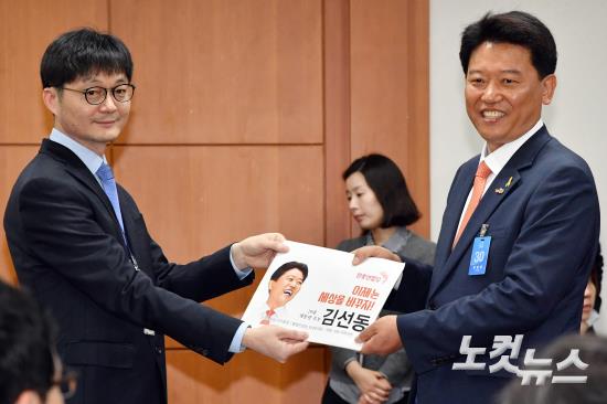 민중연합당 김선동 대선후보가 15일 오전 경기도 과천 중앙선거관리위원회에서 대통령 후보자 등록을 하고 있다.