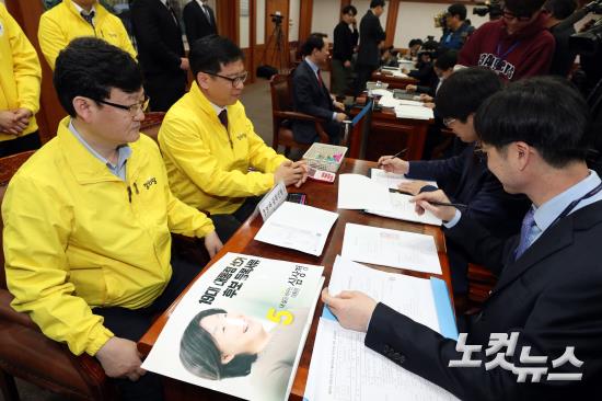 정의당 이혁재 사무총장이 15일 오전 과천 중앙선거관리위원회를 찾아 심상정 후보의 대통령 후보자 등록 서류를 대리 제출하고 있다.