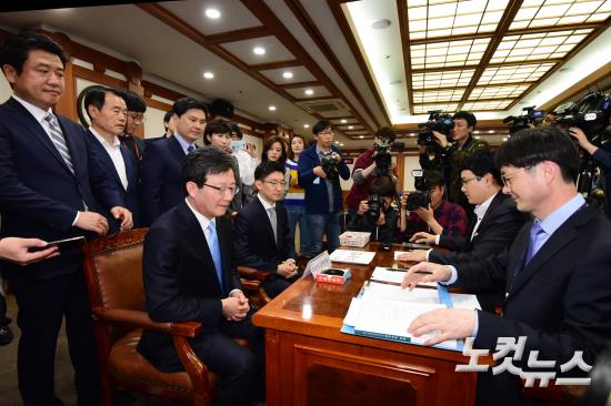 바른정당 유승민 대선후보가 15일 오후 경기도 과천 중앙선거관리위원회에서 대통령 후보자 등록을 하고 있다.
