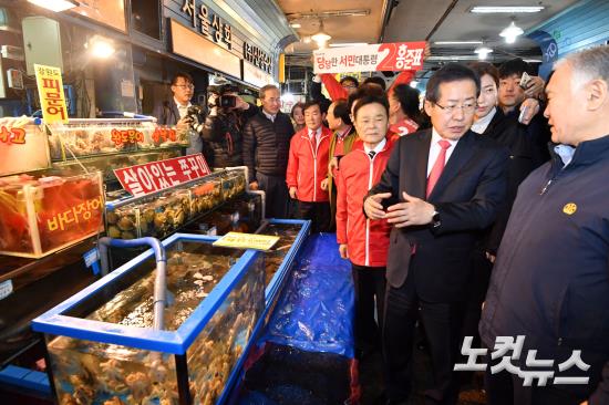공식 선거운동 첫날 가락시장 찾은 자유한국당 홍준표