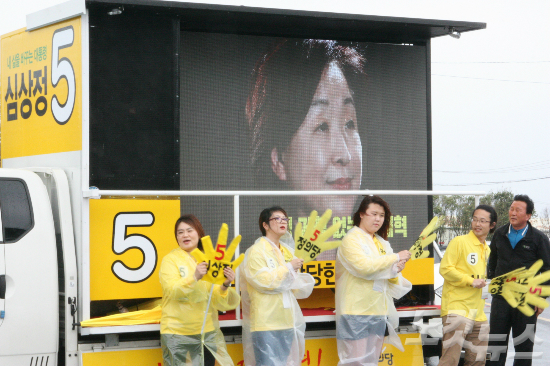 17일 정의당 제주선대위가 제주시 오일장에서 선거운동을 펼치고 있다.(사진=문준영 기자)