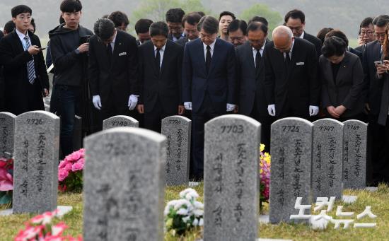 국민의당 안철수 대선후보가 18일 오전 대전 유성구 국립대전현충원을 찾아 사병묘역에 참배하고 있다.