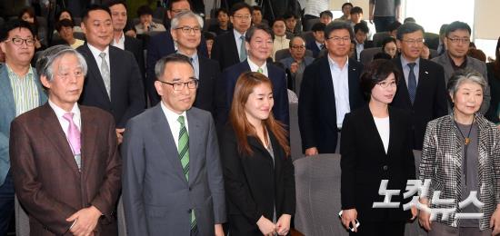 국민의당 안철수 대선후보가 18일 오전 대전 카이스트에서 열린 '과학기술 혁명으로 여는 미래' 과학기술인과의 대화에서 참석자들과 기념촬영을 하고 있다.