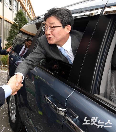 일일교사로 나선 바른정당 유승민 대선후보가 18일 오전 경기도 김포 하성면 하성고등학교에서 강의 후 학교를 떠나며 인사를 하고 있다.
