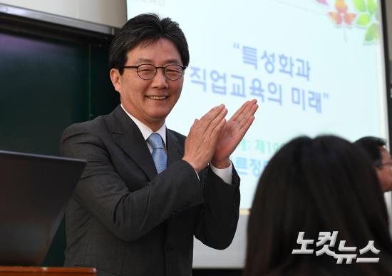 일일교사로 나선 바른정당 유승민 대선후보가 18일 오전 경기도 김포 하성면 하성고등학교에서 강의를 하고 있다.