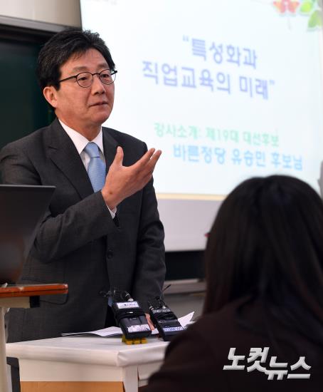 일일교사로 나선 바른정당 유승민 대선후보가 18일 오전 경기도 김포 하성면 하성고등학교에서 강의를 하고 있다.