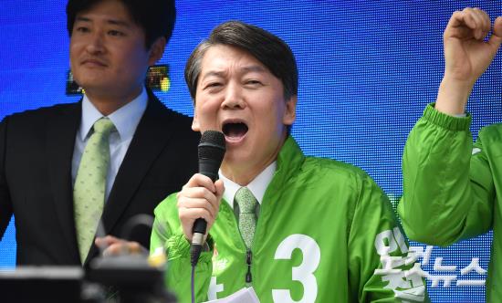 국민의당 안철수 대선후보가 18일 오전 대전 동구 대전역 앞 중앙시장 일대에서 선거유세를 하고 있다.