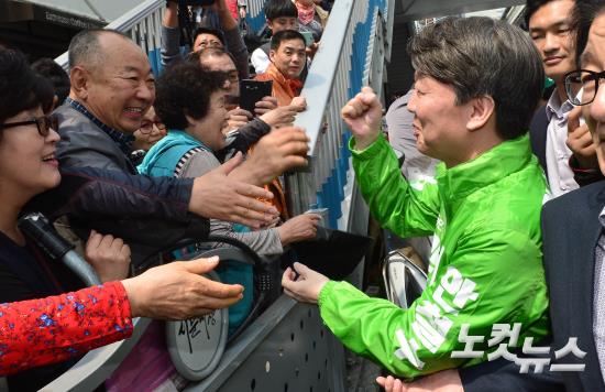국민의당 안철수 대선후보가 18일 오후 대구 서문시장에서 시민들과 인사를 하고 있다.