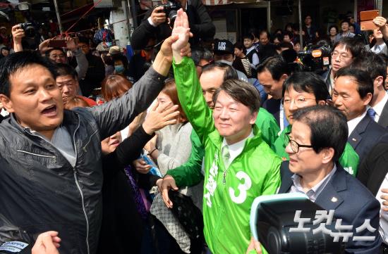 국민의당 안철수 대선후보가 18일 오후 대구 서문시장에서 시민들을 향해 손을 흔들고 있다.