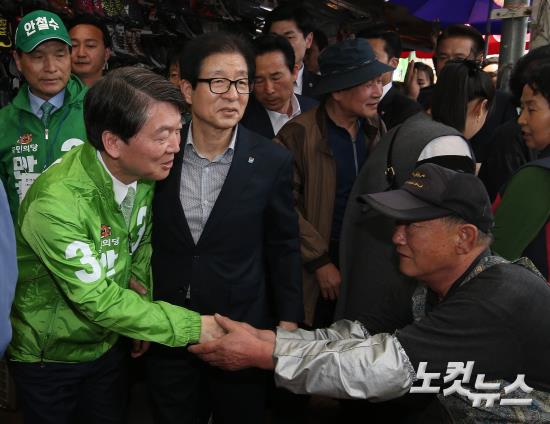 국민의당 안철수 대선후보가 18일 오후 대구 서문시장에서 시민들과 인사를 하고 있다.