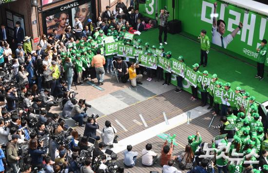 국민의당 안철수 대선후보가 18일 오후 대구 동성로 대구백화점 일대에서 선거유세를 하고 있다.