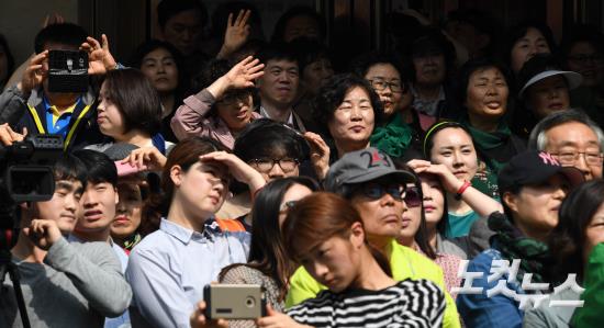 18일 오후 대구 동성로 대구백화점 일대에서 시민들이 국민의당 안철수 대선후보의 선거유세를 바라보고 있다.