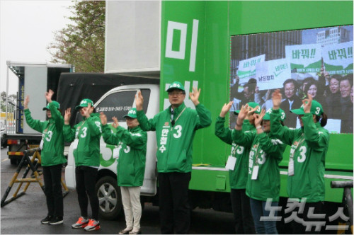 지난 17일 제주시오일장에서 열린 국민의당 제주국민선대위 유세현장. 선대위 관계자들이 안철수 국민의당 대통령 후보 지지를 호소하고 있다. (사진=자료사진)