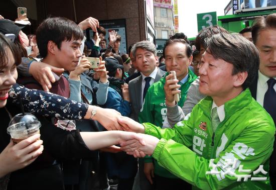 국민의당 안철수 대선후보가 18일 오후 대구 동성로 대구백화점 일대에서 선거유세를 마치고 시민들과 인사를 하고 있다.