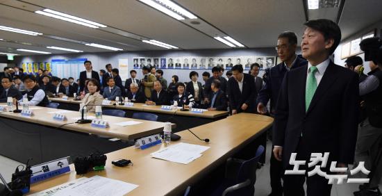 국민의당 안철수 대선후보가 19일 오전 서울 여의도 한국노총을 방문해 노동 현안에 대한 간담회를 위해 김주영 위원장과 회의실로 들어서고 있다.