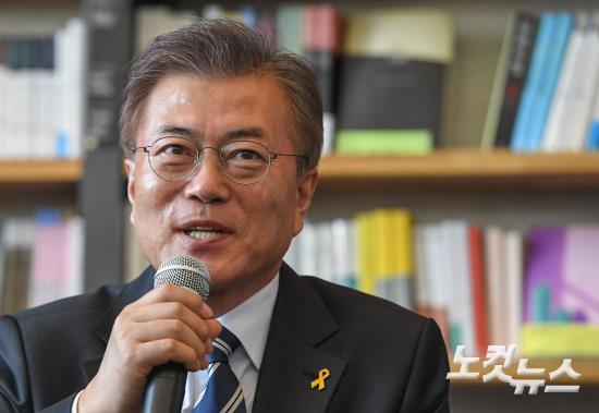 더불어민주당 문재인 대선후보가 19일 오전 서울 마포구의 한 카페에서 김덕룡 전 민화협 대표 상임의장과 국민통합을 위한 대화를 하고 있다.