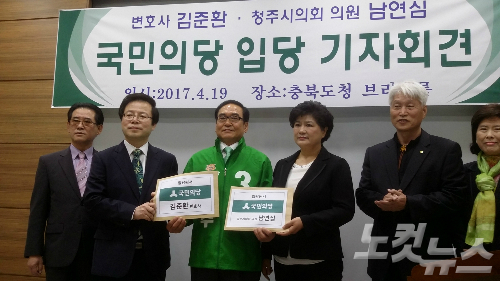 남연심 청주시의원도 한국당을 탈당하고 "안철수 후보의 행보에 지방의원의 미력한 힘이나마 보탬이 되고자 한다"며 이날 김 변호사와 함께 국민의당에 입당했다.