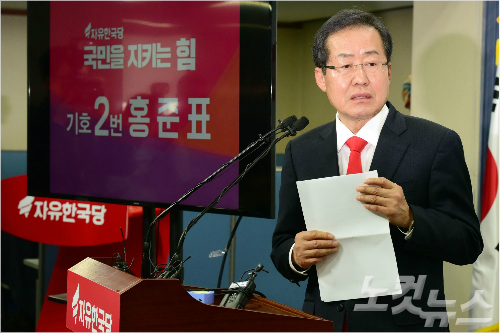 자유한국당 홍준표 대선후보가 19일 오후 서울 여의도 당사에서 안보 독트린을 발표하고 있다. 윤창원기자