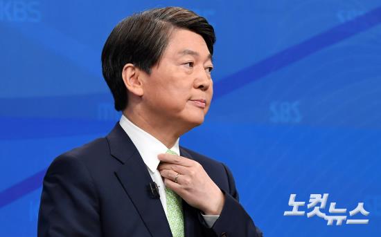 국민의당 안철수 대선후보가 20일 오전 서울 여의도 마리나센터 컨벤션홀에서 열린 ‘방송기자클럽 초청 토론회’ 에 참석해 넥타이를 만지고 있다.