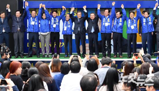 더불어민주당 문재인 대선 후보가 20일 강원 춘천 중앙로에서 집중 유세를 하고 있다.