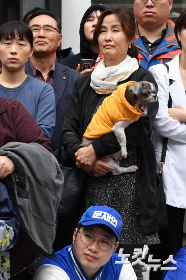 '집중하는 유권자들, 견공은 졸려'
