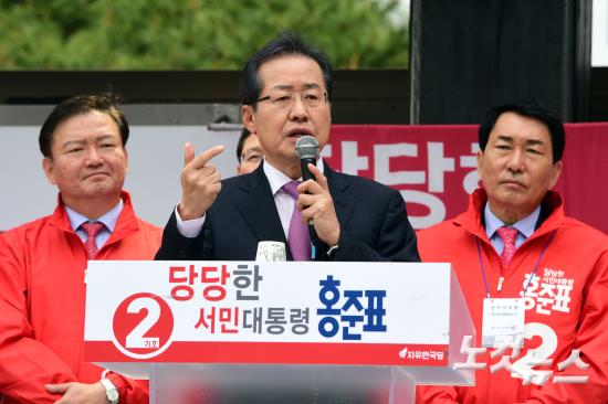 자유한국당 홍준표 대선후보가 20일 인천종합터미널 광장 유세를 펼치고 있다.