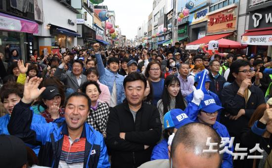 더불어민주당 문재인 대선 후보의 연설에 환호하는 원주시민들