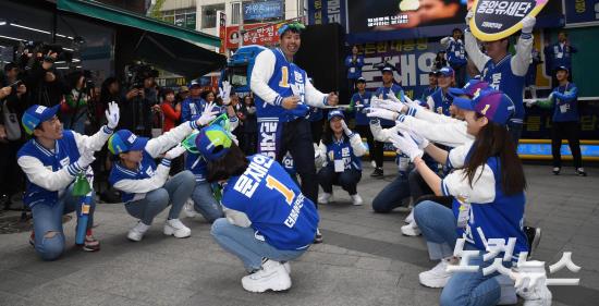20일 강원 원주 중평길에서 더불어민주당 문재인 대선 후보 유세단이 율동을 하고 있다.