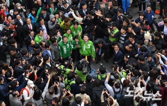 국민의당 안철수 대선후보가 20일 오후 서울 중구 남대문시장에서 시민들에게 인사하고 있다.