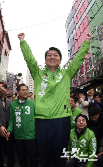 국민의당 안철수 대선후보가 20일 오후 서울 중구 남대문시장에서 시민들에게 인사를 하고 있다.
