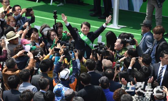 국민의당 안철수 대선후보가 22일 오전 경남 창원시 의창구 읍성로 일대에서 선거유세를 하고 있다.