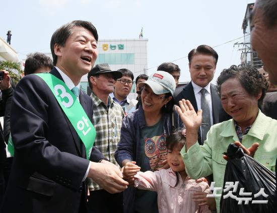 국민의당 안철수 대선 후보가 22일 오전 경남 창원시 의창구 소답시장에서 시민들과 인사를 나누며 지지를 호소하고 있다.