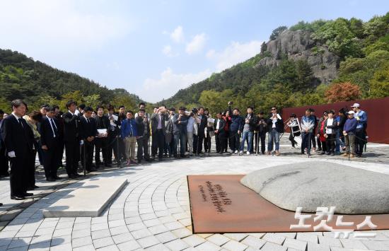 국민의당 안철수 대선후보가 22일 오후 경남 김해시 봉하마을 고 노무현 전 대통령 묘역을 찾아 참배하고 있다.