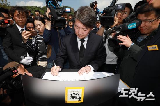 봉하마을 방명록 작성하는 안철수