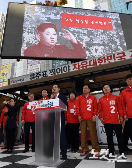 홍준표 유세차량 모니터에 나온 김정은