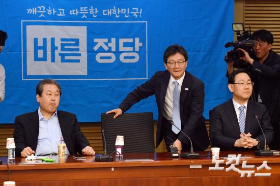 바른정당 유승민 대선후보가 24일 오후 국회 의원회관에서 자신의 거취 등을 논의하는 의원총회에 참석하고 있다.