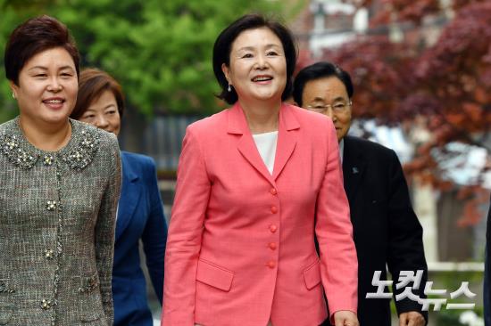 더불어민주당 문재인 대선후보의 부인 김정숙 여사가 25일 오후 서울 용산구 대한노인회를 방문하고 있다.