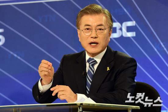 더불어민주당 문재인 대선후보가 27일 오전 서울 종로구 세종문화회관에서 열린 방송기자클럽 초청 토론회에서 발언하고 있다.