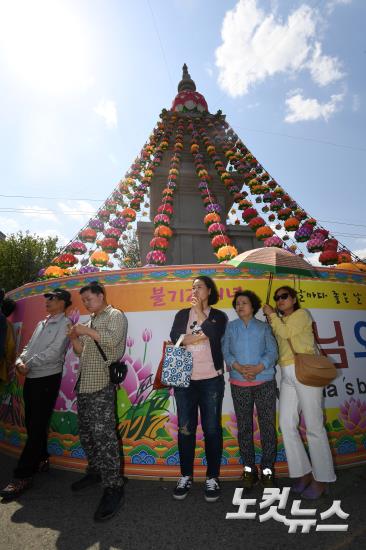연등탑 아래에서 지켜보는 유권자들