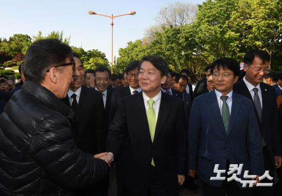 국민의당 안철수 대선후보가 27일 오후 대구 달서구 두류공원에서 2.28 기념탑을 참배를 마치고 시민들과 인사를 하고 있다.