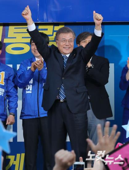 문재인 '손 번쩍 들고 지지 호소'