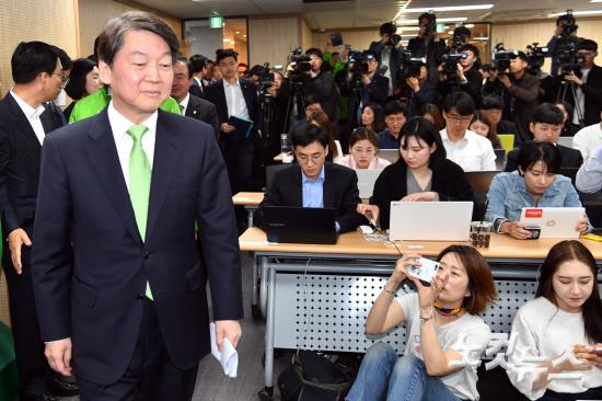 국민의당 안철수 대선후보가 28일 오전 여의도 당사에서 국민대통합과 협치에 관한 구상을 발표하기 위해 브리피 룸으로 들어서고 있다.