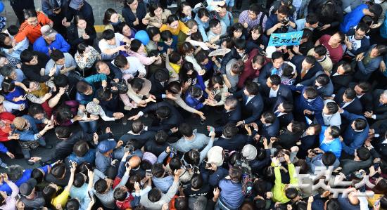 더불어민주당 문재인 대선 후보가 28일 오후 광주 충장로에서 열린 집중 유세에서 지지자들에게 인사하고 있다.
