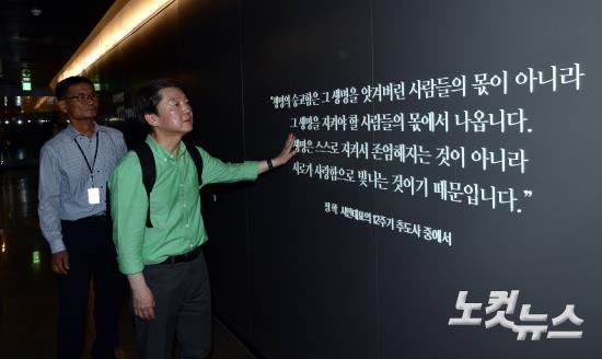 국민의당 안철수 대선후보가 4일 오후 대구 중앙로역 대구지하철참사 추모공간을 둘러보고 있다.