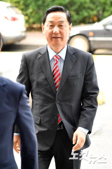 김상곤 사회부총리 겸 교육부장관 후보자가 13일 오전 서울 여의도 교육시설공제회관에 마련된 청문회 준비 사무실로 출근하고 있다.