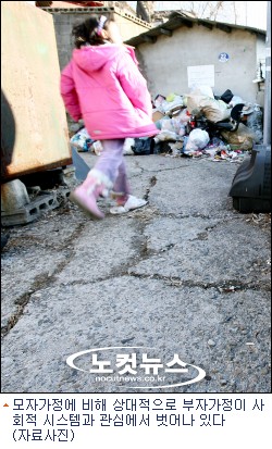 모자가정에 비해 상대적으로 부자가정이 사회적 시스템과 관심에서 벗어나 있는 것을 증명하는 대목이다.