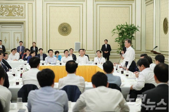 문 대통령은 모두 발언을 통해 "진작에 초청하고 싶었는데 인수위 없이 시작하다 보니 형편이 되지 않았다. 취임 100일이 지난 지금에서야 모시게 된 것을 널리 양해해 달라"고 자세를 낮췄다.