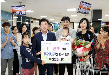 용인시 100만번째 시민이 된 주인공은 이날 안산에서 기흥구 마북동으로 전입한 이서용씨 가족이며, 100만1번째는 서울 우면동에서 동백동으로 전입한 고경일씨 가족이다.